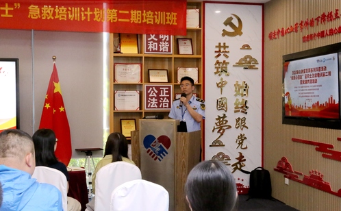 園區外賣行業黨委書記江銀弟作開場致辭。他指出,在園區組織部、兩新工委、市場監管局黨委的指導下,外賣行業黨委聯合心血管健康研究院聯合黨支部于2023年推出“星騎士”急救培訓項目,計劃通過3年時間培訓至少60名外賣騎手,希望到場的騎手朋友在為生計奔波的同時,也能不斷學習,積極回饋社會。蘇州工業園區東方華夏心血管健康研究院聯合黨支部書記嚴婷表示,希望通過組織聯建、隊伍聯抓、活動聯辦、發展聯促的形式,形成助推新就業群體健康發展的有效合力,有效助力健康“心”園區的建設。