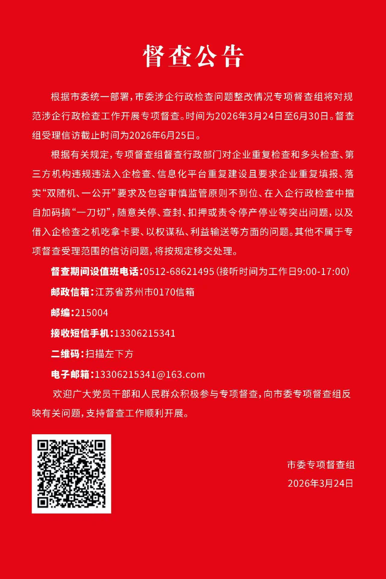 蘇州市委涉企行政檢查問題整改情況專項督查工作動員會召開 https://mp.weixin.qq.com/s/5MSKGBurFkRA2V0JlldbmA