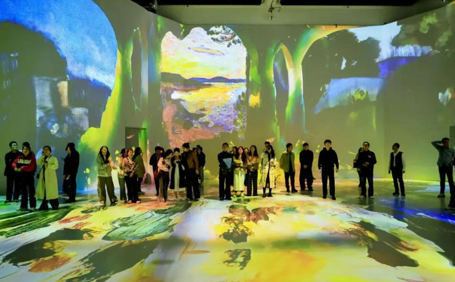 步入展廳,青年們多維體驗馬蒂斯沉浸藝術展“風暴終會平息”,在藝術與科技的深度融合中,感受“生命的力量”,體會“明亮而和諧的現代主義理想”。青年們穿梭其間,初見的拘謹在光影流轉中悄然融化。一位創業者笑言:“仿佛置身秘境,壓力煙消云散?!?/p>