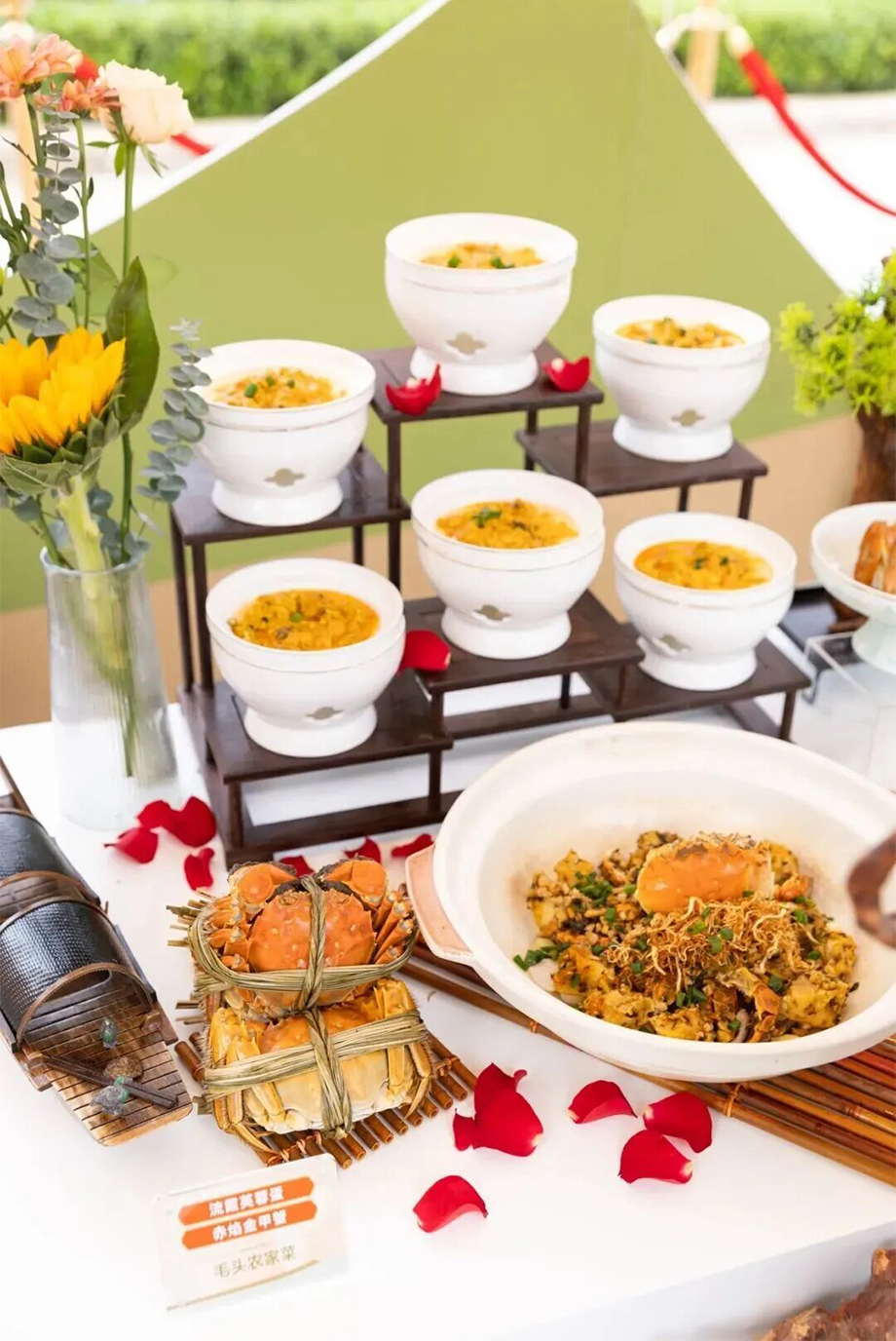 這里不僅有摘得金蟹獎(jiǎng)的“流霞芙蓉蛋”和“赤焰金甲蟹”兩道精致蟹菜,雞汁百葉小腸煲、蔥香扁魚(yú)等各類農(nóng)家菜肴更是盡顯漁家煙火氣,讓人淪陷。