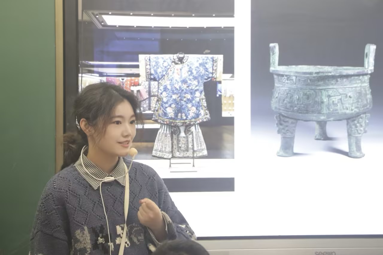 青劍湖小學吳璇馨老師執(zhí)教《多彩的傳統(tǒng)民族紋樣》。課程以“破解藻井井心密碼”為主線,帶領學生走進中國傳統(tǒng)紋樣的瑰麗世界?!笆裁词羌y樣?”孩子們帶著這一疑問開啟探究,通過任務單,借助AI工具,借助色相環(huán)認識對比色、鄰近色的巧妙搭配,通過拼擺活動體驗對稱、均衡、旋轉的排列之美。當孩子們親手創(chuàng)造出屬于自己的紋樣時,民族自豪感也在他們心中悄然生根。
