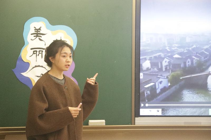 星灣學校翁?沁老師執(zhí)教《美麗蘇居》,以“游船路線”為情境,帶領學生領略姑蘇水城的獨特魅力。課堂上,孩子們化身沿途站點的“景點打卡相框”裝點師,運用撕紙藝術,巧妙地表現(xiàn)了江南水鄉(xiāng)的韻律之美。翁老師引導學生在合作中探究建筑排列的“高低、大小、前后”關系,不僅鍛煉了動手能力,更在潛移默化中增強了學生對家鄉(xiāng)文化的自豪感與傳承意識。