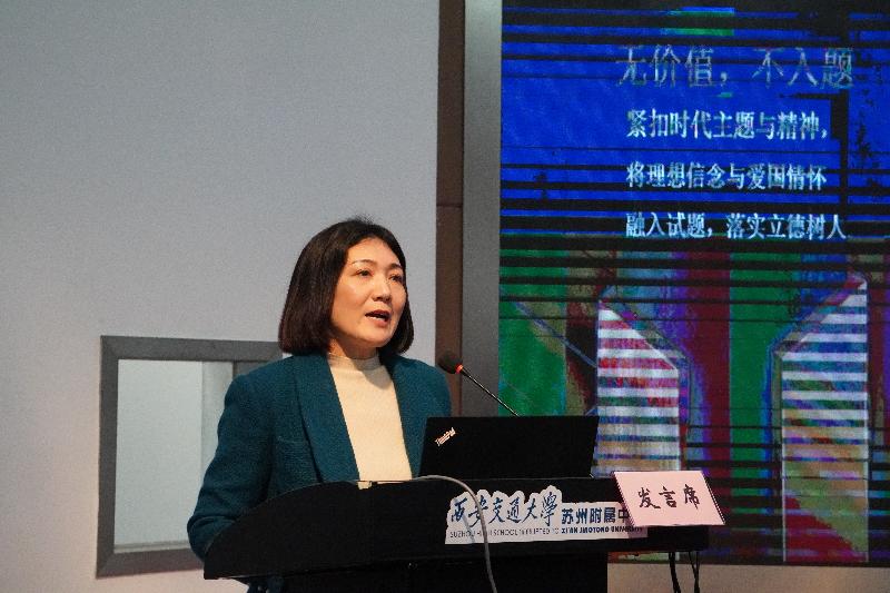 蘇州大學附屬中學教務處主任樊曉宇交流了“教學考評研”一體化探索的經驗。她展示了學校“以賽促教”取得的優異成績,并分享了“半塘書院”賦能教師專業成長、兩校區聯動深化集體備課、AI技術輔助新教師培養等一系列創新實踐,生動呈現了“一校兩區”優勢互補、協同發展的新路徑。