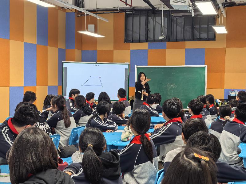 來自景城學(xué)校的徐夢老師與星洋學(xué)校八(10)班的學(xué)生們在科創(chuàng)空間共同呈現(xiàn)了一節(jié)別開生面的研討課《8.4梯形》。