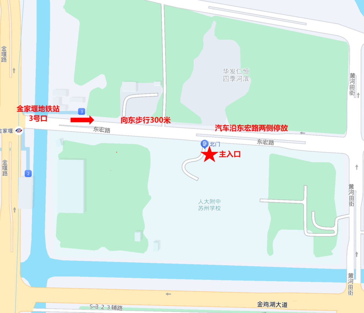 1.交通提示:為加強現場管理,保障現場秩序,應聘人員車輛不得進入校園,建議綠色出行。①如綠色出行,地鐵6號線金家堰站3號口出站后向東步行約300米可到達學校北門;②如確有必要開車的,可就近停放于學校北門(東宏路上)。