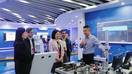 調(diào)研組一行首先來到江蘇匯博機(jī)器人技術(shù)股份有限公司,參觀公司展廳、1+X實(shí)訓(xùn)樣板間等,聽取公司開展校企合作,在工業(yè)機(jī)器人、工業(yè)互聯(lián)網(wǎng)等領(lǐng)域聯(lián)合培養(yǎng)科技人才的模式和成果介紹。